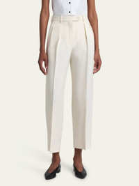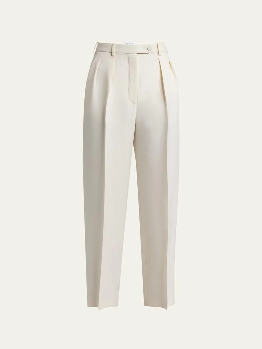 Loro Piana "Bart" trousers with a pleated front Full length High rise Tapered legs Side slip pockets Button/zip fly; belt loops Virgin wool/silk Dry clean Made in Italy
