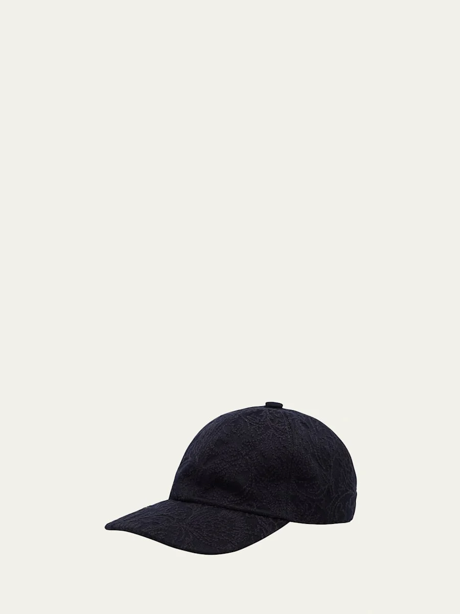 Loro Piana embroidered baseball cap Top button Six-panel construction Curved stitched brim Adjustable back strap Item Weight (Lbs.): 0.5 Cashmere Dry clean Trim: Leather Made in Italy Online Inquiries: BGS21_D53N6| Store Inquiries: #4940083