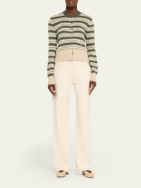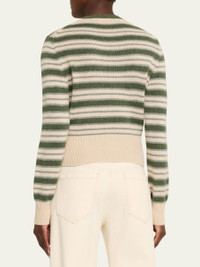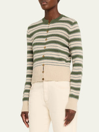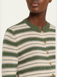 Loro Piana "Fobello" cardigan is knitted from iconic baby cashmere 7gg with a striped intarsia enveloping warmth with incredible lightness Crew neckline; button front Long sleeves Slim fit Ribbed cuffs and hem Cashmere Made in Italy Online Inquiries: BGS21_BAA11| Store Inquiries: #5066114