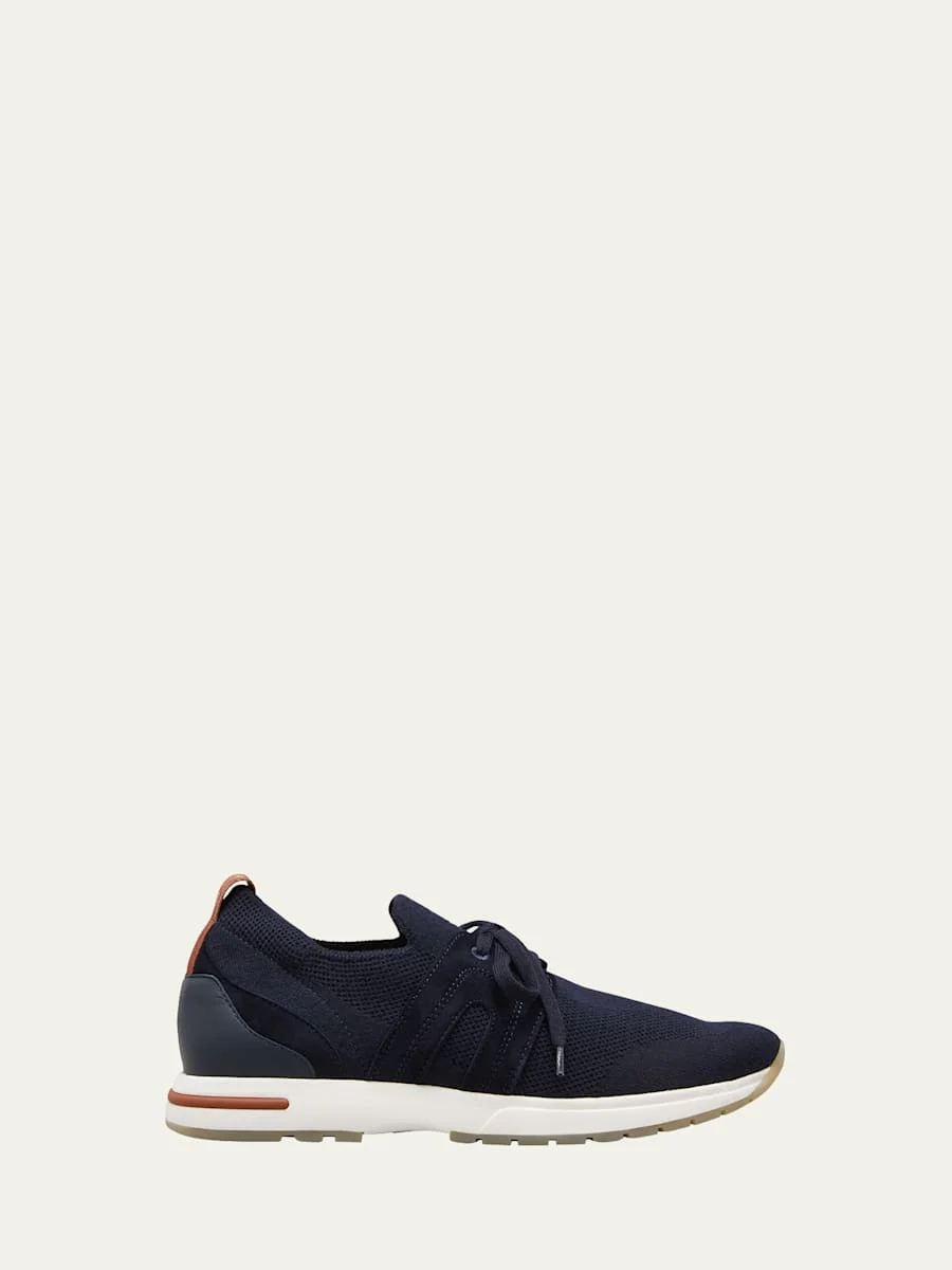 Loro Piana knit fabric sneakers with suede trim. 0.5" flat heel. Round toe. Lace-up vamp. Leather lining. Rubber sole. Made in Italy. Proposition 65 warning for California residents Size Note: Item runs small, consider ordering a size up. Online Inquiries: BGS21_X61AB| Store Inquiries: #3553490