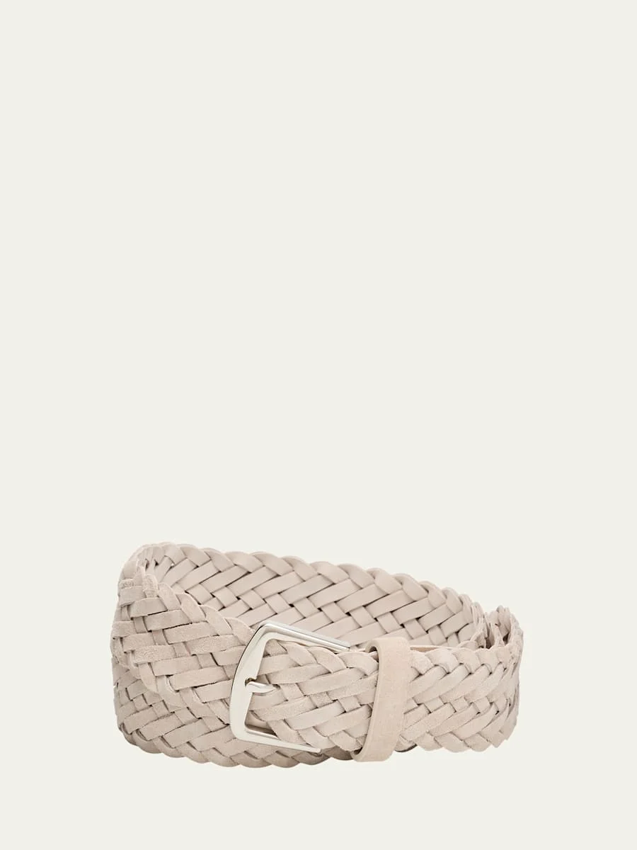 Loro Piana "Alsavel" belt in braided suede Silvertone singleprong buckle Leather loop Adjustable fit Leather Made in Italy