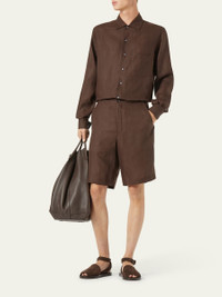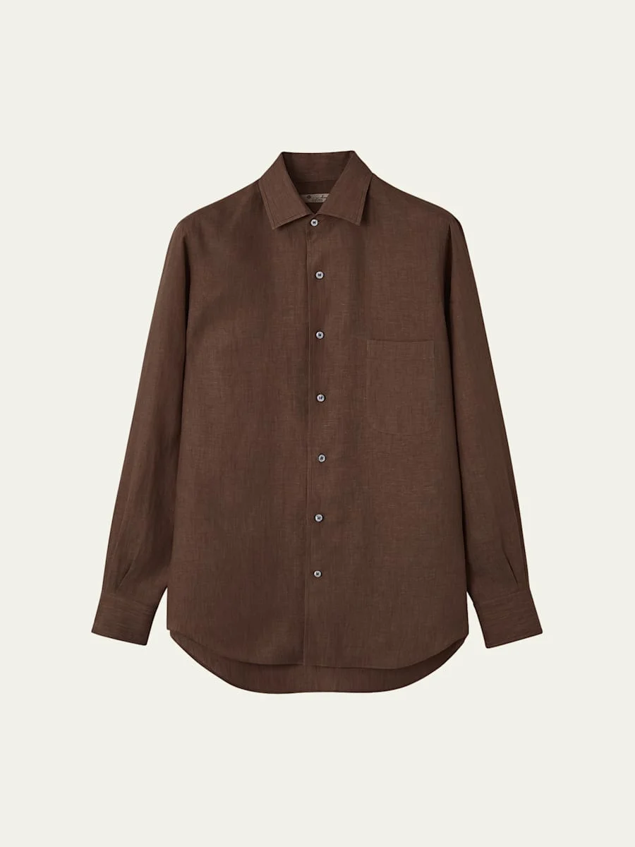 Loro Piana "Andre" lightweight shirt. Spread collar; buttonfront. Long sleeves with button cuffs Chest pocket Regular fit Linen. Made in Italy.