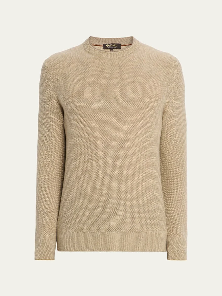 Loro Piana "Girocollo City" texture knit crewneck sweater Crew neckline Long sleeves Banded cuffs; contrast trim Banded hem Pullover style Cashmere Made in Italy