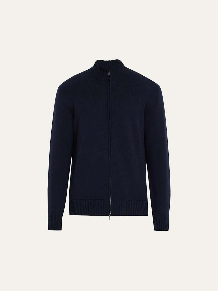 Loro Piana "Parksville" sweater in ultra-soft baby cashmere Ribbed stand collar Full-zip front Long sleeves Ribbed cuffs and hem Made in Italy Model is 6'1"/185cm. Online Inquiries: BGS21_NDT5Q| Store Inquiries: #4517526