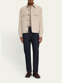 Loro Piana "Clem" blouson in sumptuous Summer linen and silk Point collar Button front Chest flap pockets Long sleeves Buttoned tabs Flax/silk Fully lined Dry clean Made in Italy Online Inquiries: BGS21_NCVY3| Store Inquiries: #4961109