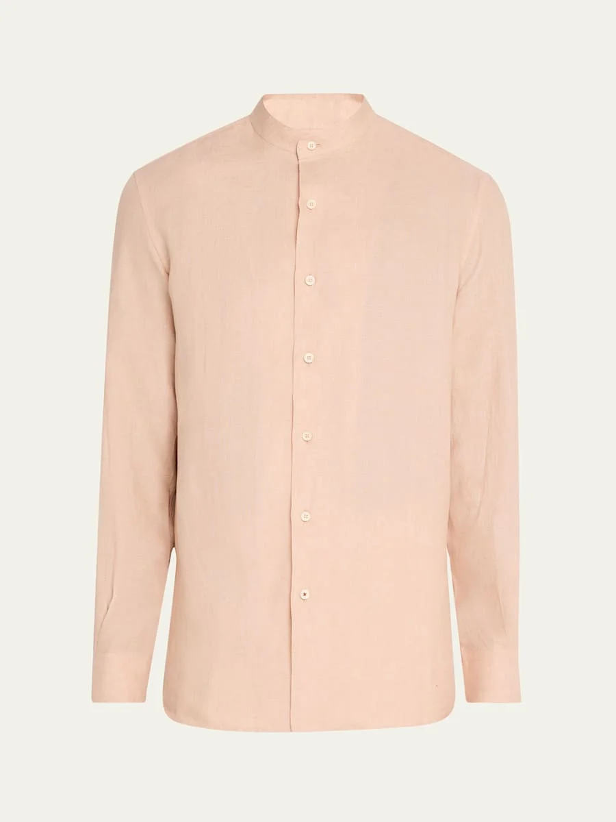 Men's Elia Linen Mandarin-Collar Sport Shirt