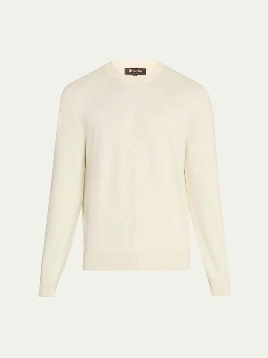 Loro Piana "Empire" pullover sweater in Wish® wool fabric 18gg Ribbed crew neckline Long sleeves Ribbed cuffs and hem Pullover style Classic fit Virgin wool Unlined Dry clean Made in Italy