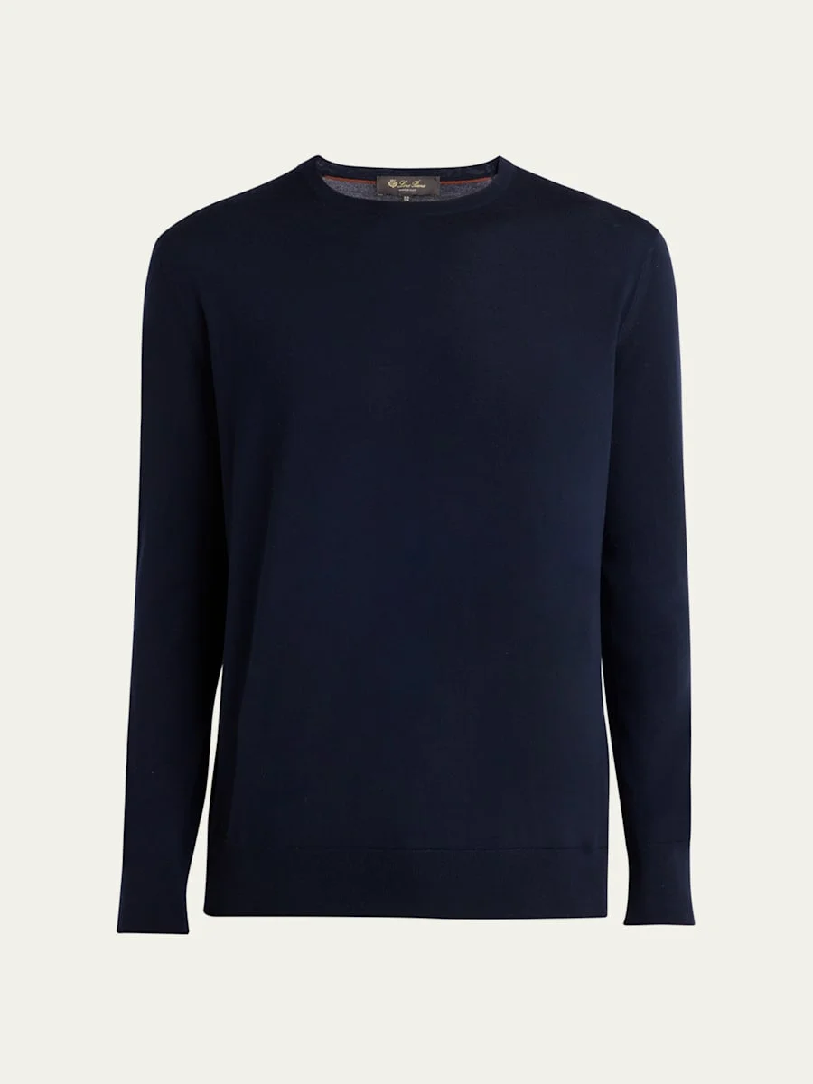 Loro Piana "Girocollo" sweater Crew neckline Long sleeves Banded cuffs and hem Relaxed fit Pullover style Wool Machine wash warm Made in Italy