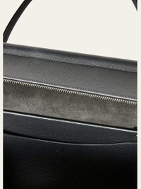 Loro Piana "Loom L42" weekender bag in calfskin leather Leather top handles Zip closure with LP padlock Stamped logo on the front Interior, one leather open pocket with stamped logo One removable inner zip pouch LP ring charm Ringshaped protective feet Hardware with gunmetal finish Approx. 10.2"H x 16.5"W x 9.0"D Made in Italy