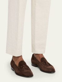 Loro Piana "Serge" loafers in supple leather accented with tonal topstitching Stacked heel Round apron toe 360-degree lacing Tassel ends Leather lining and outsole Slip-on style Made in Italy Online Inquiries: BGS21_NDQEL| Store Inquiries: #5066629