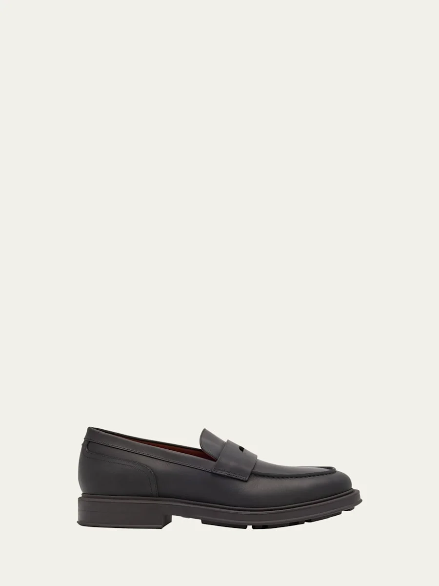 Loro Piana "Travis" loafers in smooth leather Stacked heel Round moc toe Penny keeper strap Slipon style Rubber outsole Lining: Leather Made in Italy