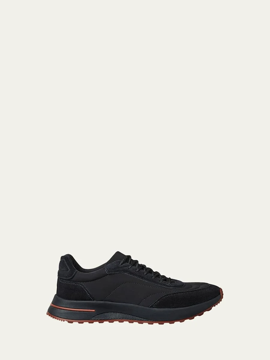 Loro Piana sneakers made from water-repellent and wind-resistant microfiber with suede trim, topstitching and light padding Ultra-lightweight soles with cleats Flat heel Reinforced round toe Lace-up vamp Backstay logo Rubber outsole Made in Italy Online Inquiries: BGS21_NDQET| Store Inquiries: #5066637