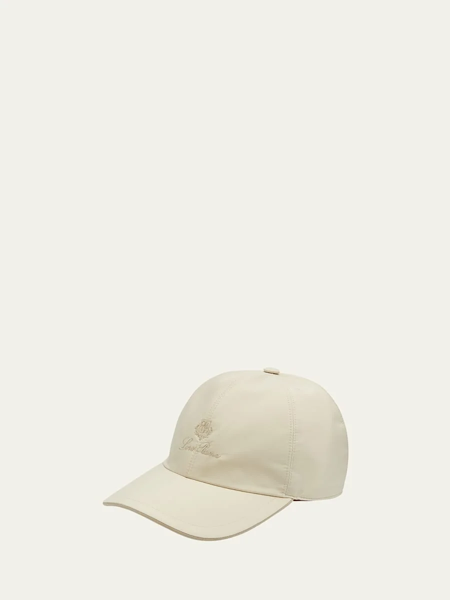Loro Piana baseball hat. Treated with Storm System for a waterproof, windresistant finish. Embroidered logo at front. Elasticized strap at back. Polyester; lining, cotton/polyester. Made in Italy.