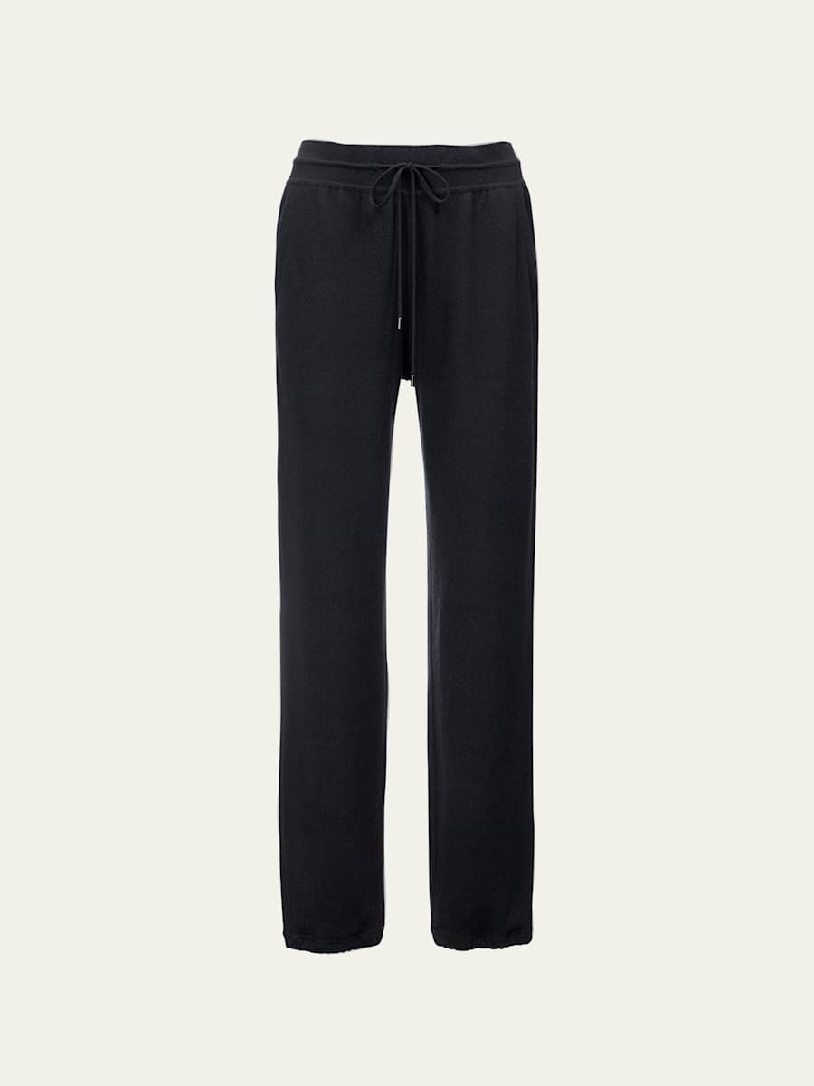 Loro Piana Baby Cashmere jog pants. Approx. measurements: 9.5" rise; 29.5" inseam; 39.5" outseam. Drawstring elasticized waist. Side pockets; back patch pocket. Relaxed legs taper into elasticized cuffs. Pull-on style. Cashmere. Lining, silk/spandex. Hand wash or dry clean. Made in Italy. Model is 5'10"/177cm. Online Inquiries: BGS21_B5PKW| Store Inquiries: #863011