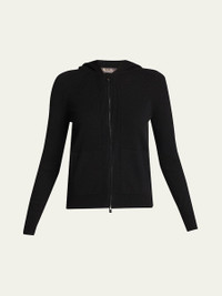 Loro Piana bomber-style sweater in engineered knit. Hooded neckline; two-way front zip. Long raglan sleeves. Side slip pockets. Baby cashmere. Made in Italy. Model is 5'10"/177cm. Online Inquiries: BGS21_B59LN| Store Inquiries: #2196052