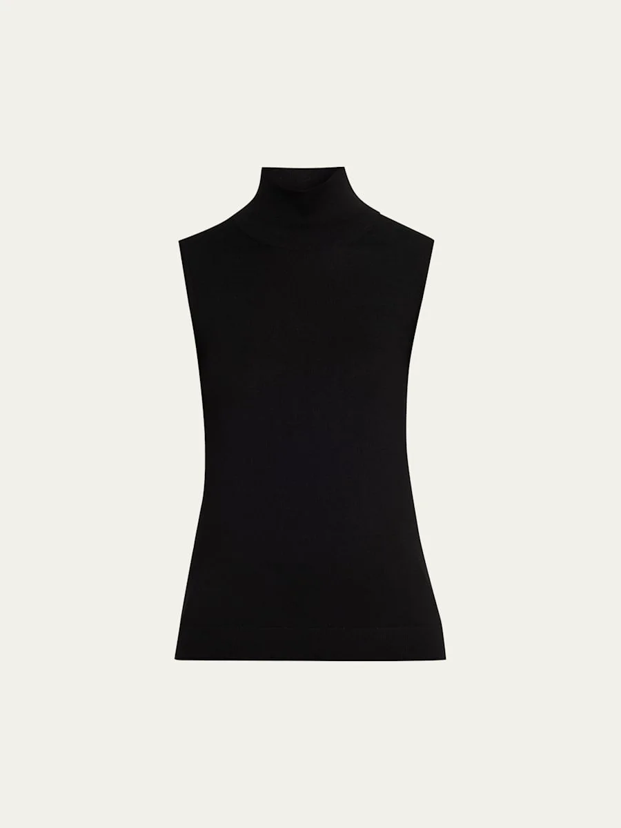 Loro Piana "Piuma" sleeveless top crafted of lightweight, sumptuous cashmere knit. Ribbed finishes on the collar, cuffs, and hem Turtleneck Sleeveless Fitted Pullover style Cashmere Dry clean Made in Italy