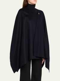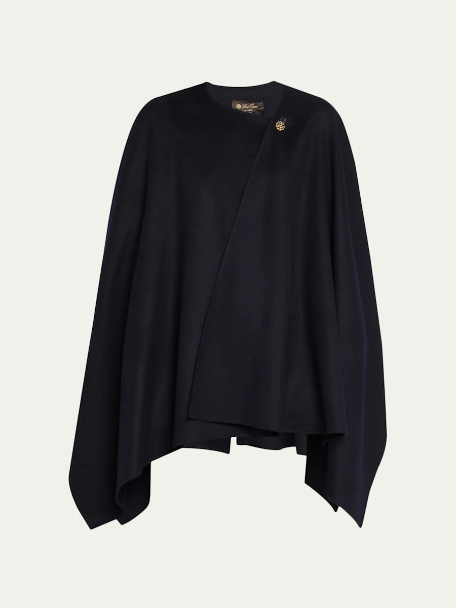 Loro Piana "Renata" double-face cape complete with gold-tone thistle button closure Round neckline Cape sleeves Asymmetric hem Cashmere Dry clean Trim: Leather Made in Italy Online Inquiries: BGS21_D5BB3| Store Inquiries: #5059055