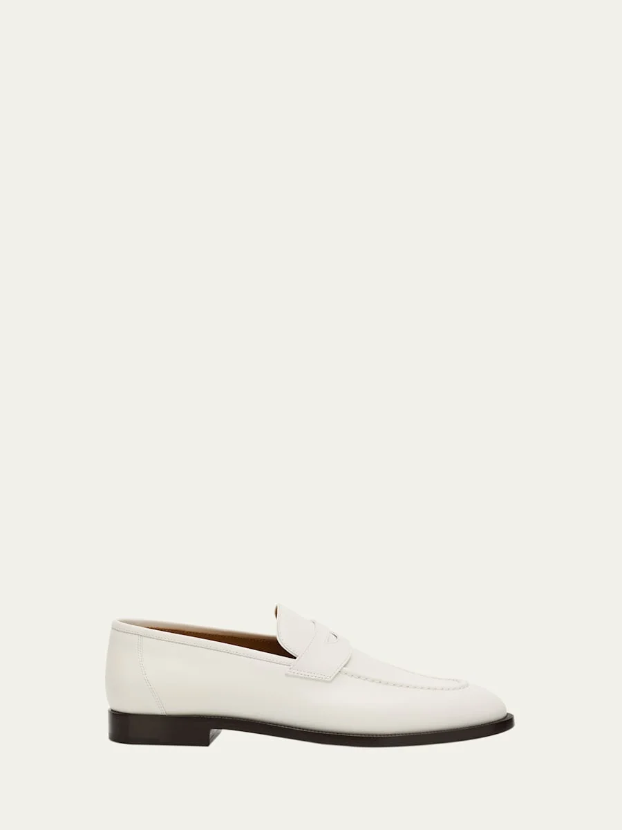 Exuding Italian craftsmanship, the "Sergio" loafers by Loro Piana are crafted from smooth calf leather Stacked flat heel Almond moc toe Notched vamp with keeper strap Slip-on style Leather lining and outsole Made in Italy Online Inquiries: BGS21_X6ZB8| Store Inquiries: #5068915