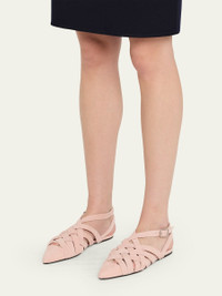 With its intricate cage design, the "Silene" suede flat by Loro Piana is primed to complete a myriad of ensembles through late summer and beyond. Its straps are cut from nubuck calfskin, evoking the softness of cashmere and casting a delicate woven pattern. Flat heel Pointed toe Woven caged vamp Adjustable ankle strap with balloon-shaped buckle Rubber outsole Lining: Leather Made in Italy Online Inquiries: BGS21_X6ZB1| Store Inquiries: #5068908