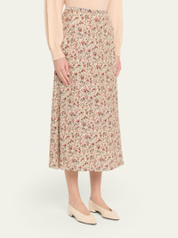 Cut from silk twill, the "Simona" midi skirt from Loro Piana features the intricately delicate Arundel Gardens print, a botanical design inspired by the namesake garden Sits high on the hips Hem falls below the knee Skirt falls straight from hip to hem Zip and hook closure Silk Dry clean Made in Italy Online Inquiries: BGS21_BAA1F| Store Inquiries: #5066131