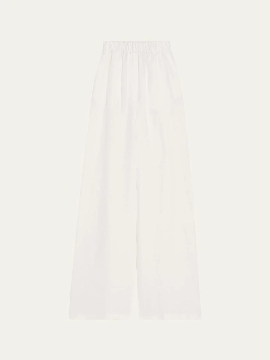 Loro Piana "Valerio" sunny trousers with an elasticized waistband Mid rise sits high on hip Side slip pockets Relaxed straight legs Full length Pullon style Linen Dry clean Made in Italy