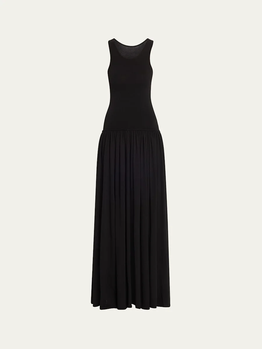 Loulou Studio "Jada" knit maxi dress with flowing ruched skirt STANDARD 100 by OEKO-TEX® — This item has been laboratory tested to meet 100 control parameters and is free of harmful substances Scoop neckline Sleeveless Drop waist Full length A-line silhouette Slipover style Viscose/nylon/polyamide/elastane Unlined Dry clean Imported Online Inquiries: BGS21_B9YHT| Store Inquiries: #5001907