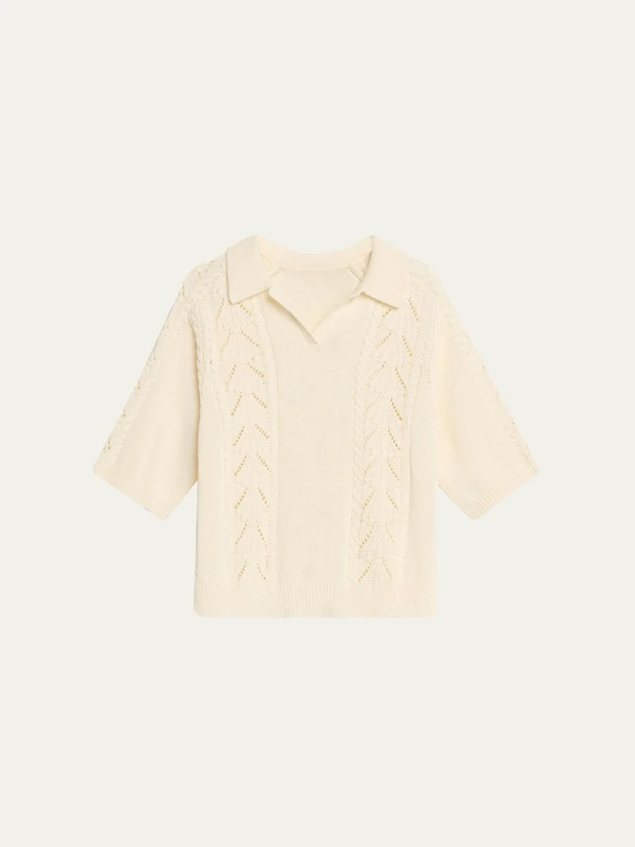 Kina Pointelle & Cable-Knit Cotton Polo Sweater