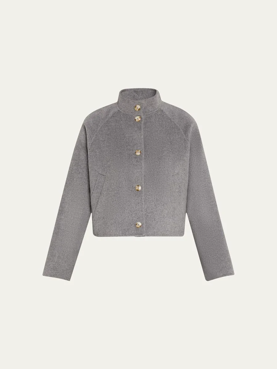 Loulou Studio "Nyma" jacket in brushed wool-cashmere Stand collar; single-breasted front Long raglan sleeves Hip welt pockets Straight fit Cropped length Button closure Wool/cashmere Dry clean Imported Online Inquiries: BGS21_BA7Y4| Store Inquiries: #5049067