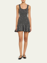 Knit from a soft, stretchy fabric, the "Sarajane" dress by LoveShackFancy is finished with shimmering sequins and godet paneling through the skirt Scoop neckline Sleeveless Hem falls above the knee Fitandflare silhouette Slipover style Recycled polyester/metallic/viscose/polyester Dry clean Imported