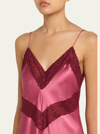 LoveShackFancy's "Serita" stunning slip dress is crafted from mediumweight silk charmeuse with gorgeous contrasting lace trim V neckline Sleeveless Full length Aline silhouette Invisible back zipper Silk Dry clean Imported