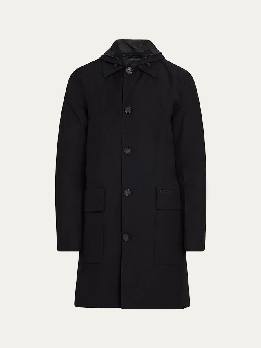 Mackage "Mathias" 3-in-1 overcoat Removable down liner and shell bib with hood Seam-sealed construction for weather protection Adjustable storm visor with drawcord Button front closure Large patch pockets and welt pockets with flap MACKAGE silicone branding at pocket Two interior patch pockets on the front lining wall Adjustable sleeve cuffs with snaps Center back vent Horn buttons Polyester/rayon/cellulose acetate Dry clean Imported Online Inquiries: BGS21_ND2WY| Store Inquiries: #5009634