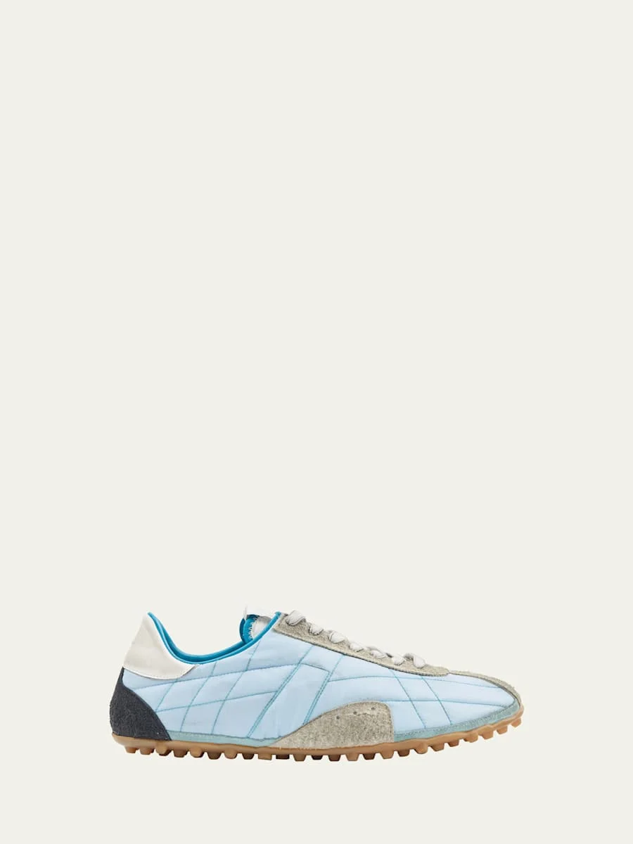 Spike shoes from the 1960s inspire these Maison Margiela "Sprinters" low-top sneakers. Genuine suede complements the quilted nylon and polyamide upper. 0.75 in / 20 mm flat heel Round toe Lace-up vamp Logo patch at tongue Signature stitch detail on heel counter Rubber outsole Cotton lining Made in Italy Online Inquiries: BGS21_NDQA6| Store Inquiries: #5066140