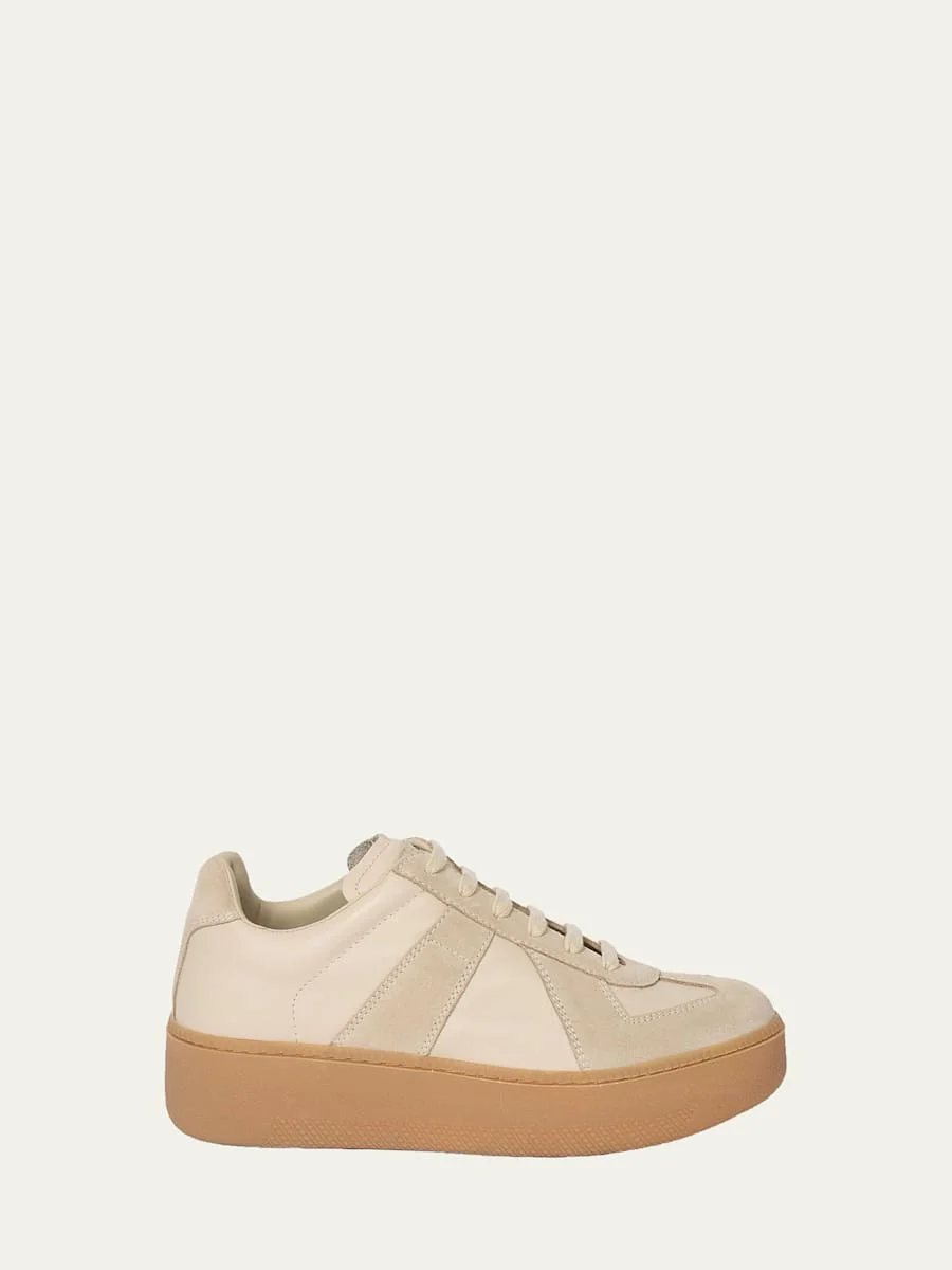 Replica Mixed Leather Platform Sneakers