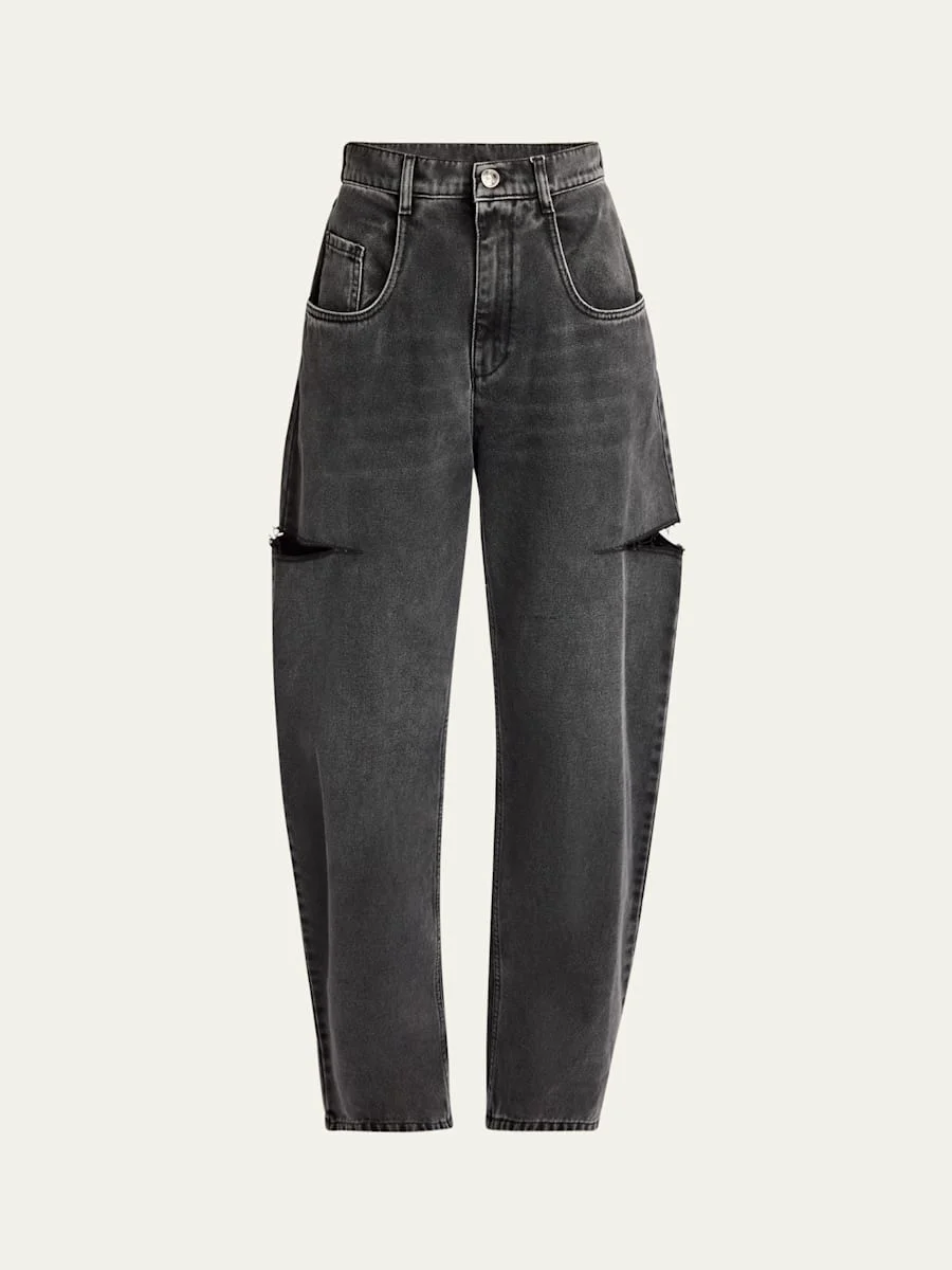 Maison Margiela denim pant with slit detail Full length High rise Straight legs Five-pocket style Button/zip fly; belt loops Cotton Cotton/polyester lining Machine wash cold Made in Italy Model is 5'10"/177cm. Online Inquiries: BGS21_B94QF| Store Inquiries: #4748033
