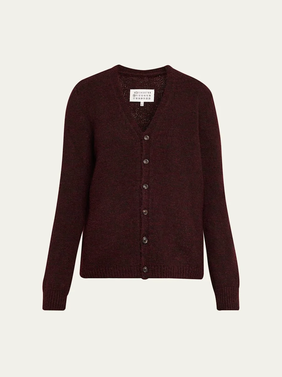 Maison Margiela cardigan in twotoned textured knit V neckline; button front Long sleeves Relaxed fit Ribbed cuffs and hem Virgin wool/nylon/polyamide Dry clean Made in Romania