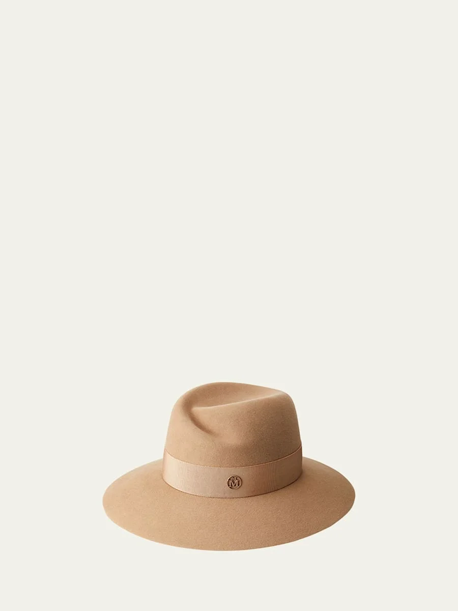 Maison Michel "Virginie" water-resistant wool felt hat with band accent Dented crown Large brim Logo medallion on band Wool/polyurethane Made in Italy Online Inquiries: BGS21_D4AEV| Store Inquiries: #4337449
