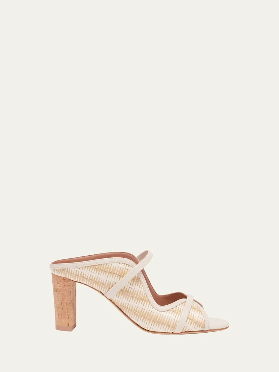 Norah 70 White Stripe Raffia Heeled Sandals