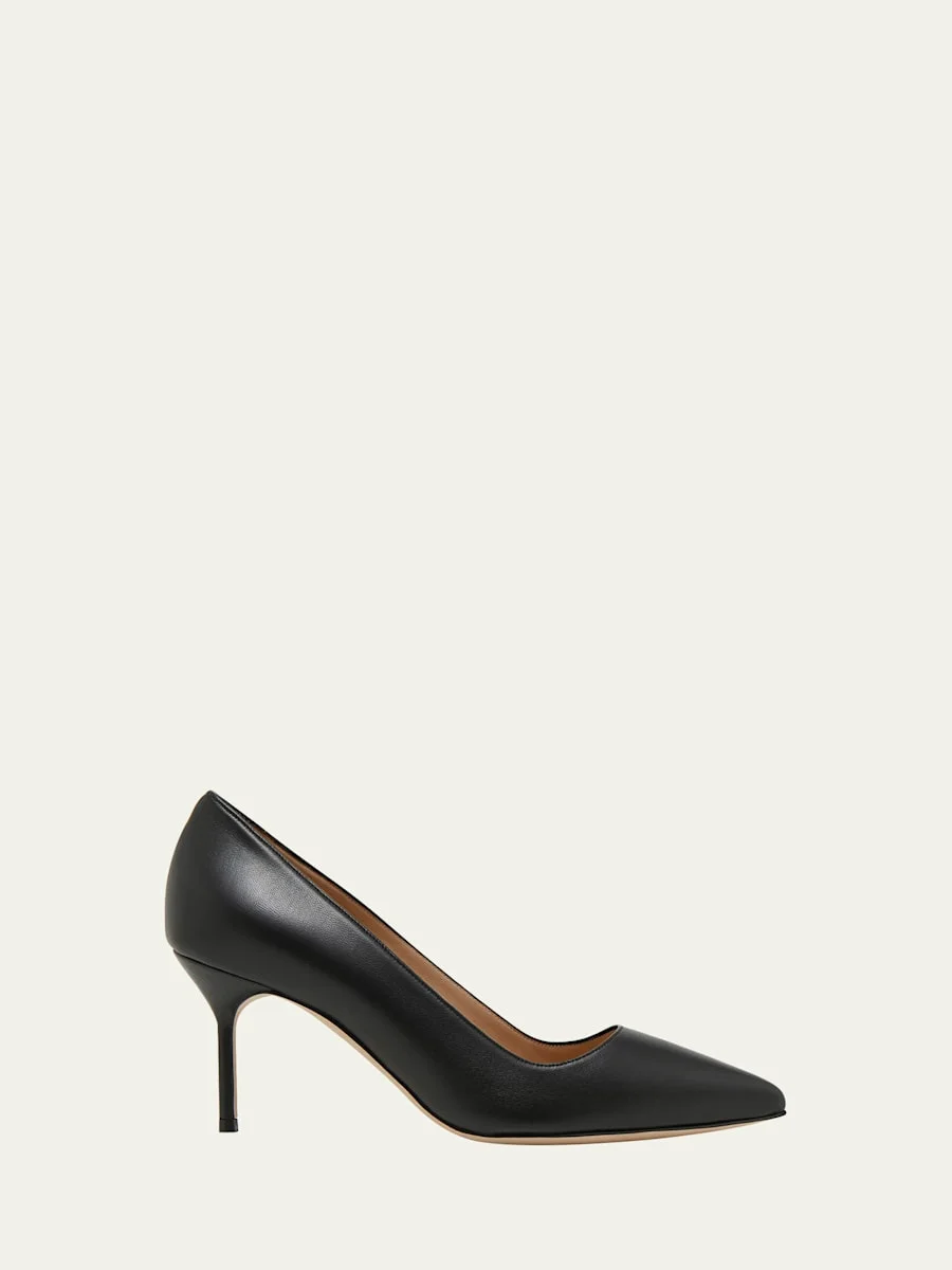 Manolo Blahnik lambskin leather pumps. 2.75 in / 70 mm stiletto heel. Pointed toe. Slip-on style. Leather lining and outsole. "BB" is made in Italy. Online Inquiries: BGS21_X5N1C| Store Inquiries: #4247316