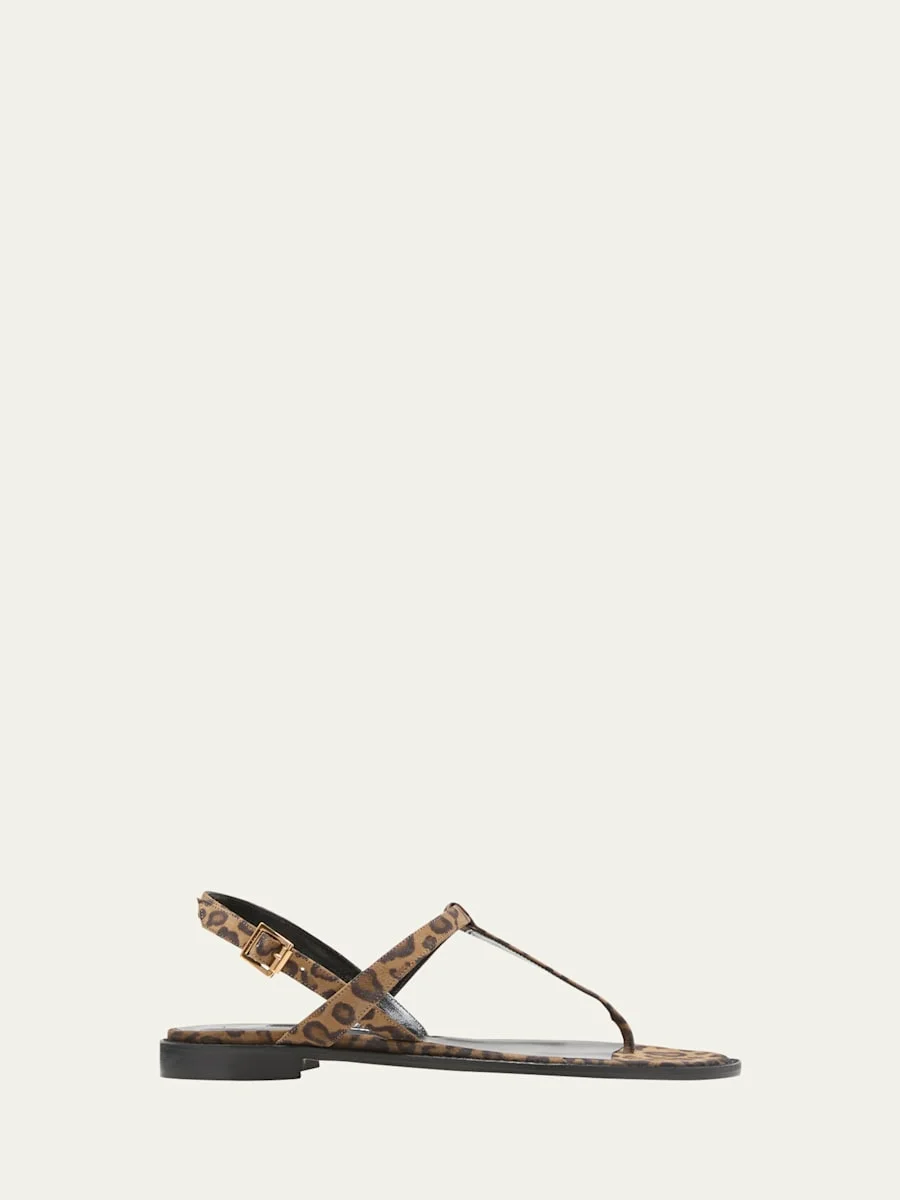 Manolo Blahnik "Hata" leopardprint kid suede sandals 0.25 in / 10 mm flat heel Thong strap Adjustable slingback strap Leather outsole Lining: Leather Made in Italy