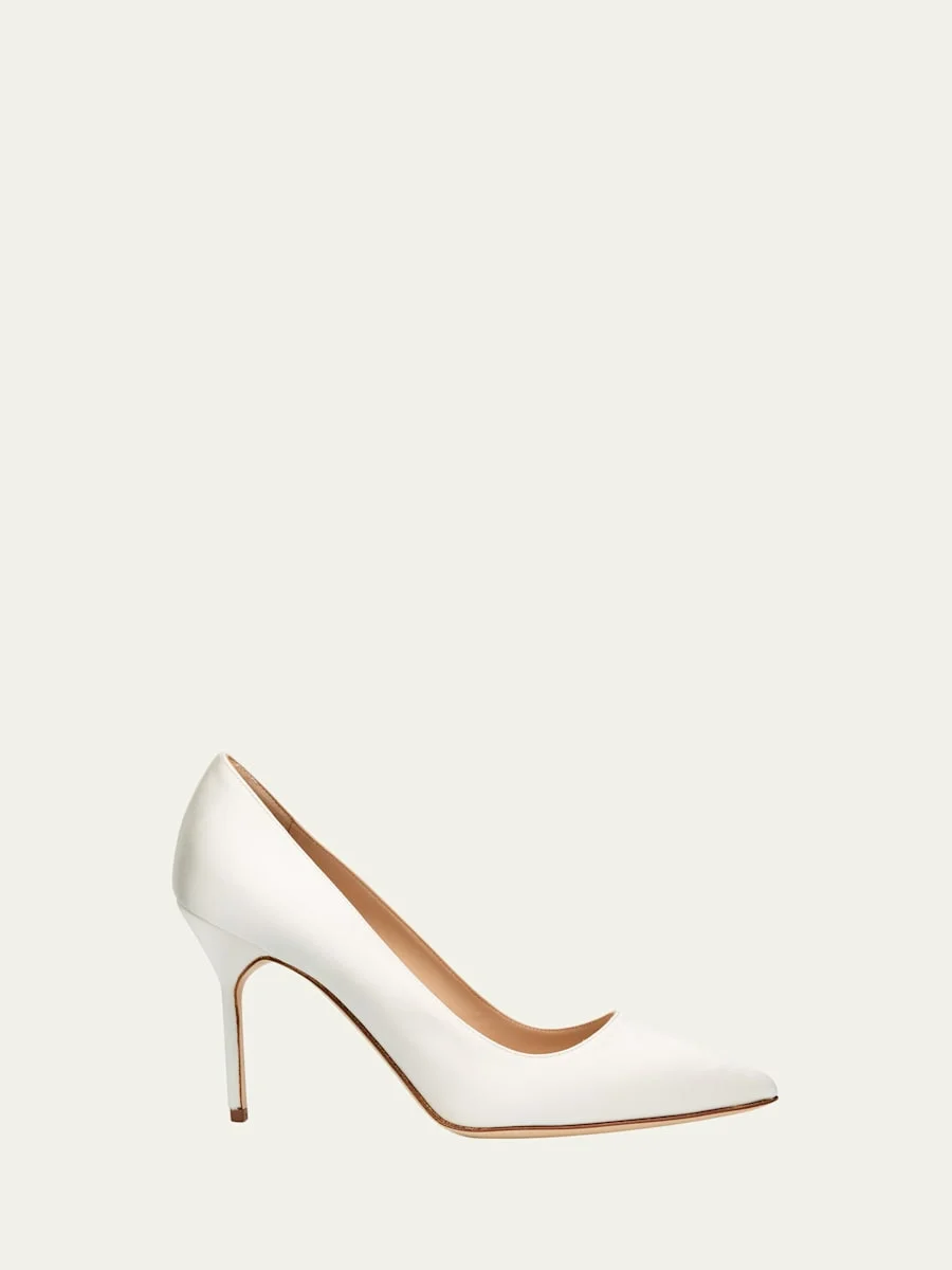 Manolo Blahnik "Kietta" metallic leather pumps 2.75 in / 70 mm stiletto heel Pointed toe Slipon style Leather outsole Lining: Leather Made in Italy