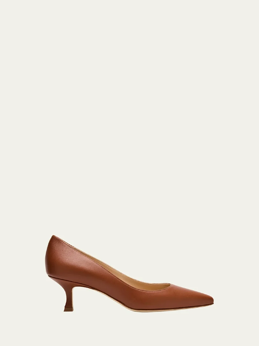 Manolo Blahnik "Srila" smooth leather low pumps 2.00 in / 50 mm stiletto heel Pointed toe Slipon style Leather outsole Lining: Goat leather Made in Italy
