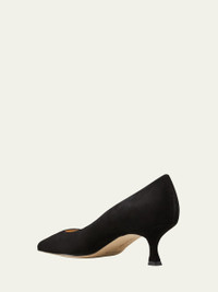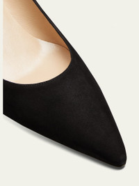 Manolo Blahnik suede pump. 2" covered heel. Pointed toe. Topstitched collar. Smooth outsole. Slip-on style. "Srila" is made in Italy. Online Inquiries: BGS21_X43KF| Store Inquiries: #2461012