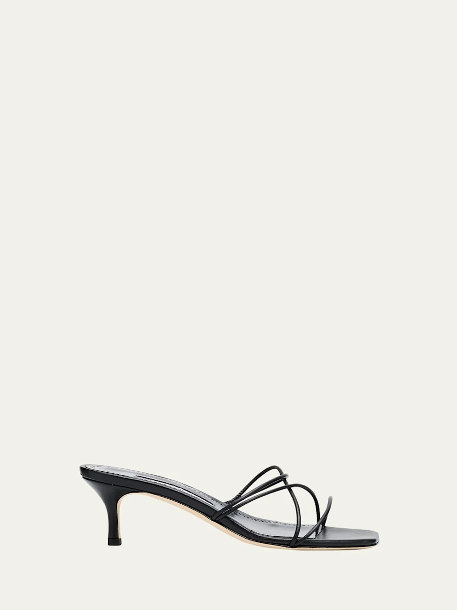 Strappy Leather Kitten-Heel Mule Sandals