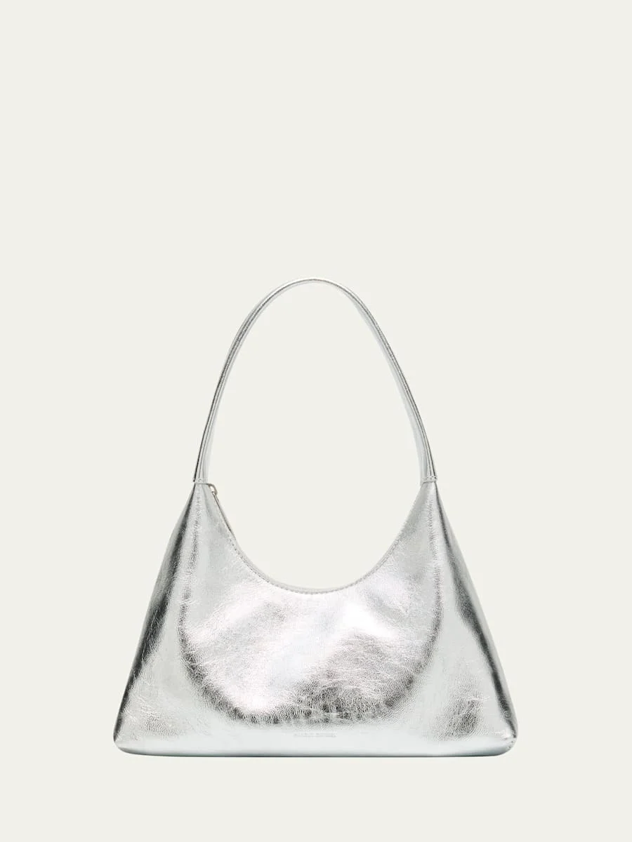 This Mansur Gavriel "Candy" hobo bag is crafted in metallic leather with a softly crinkled finish and curved top edge Flat shoulder strap, 6.7" drop Zip top closure Lining: Leather/suede Approx. 4.7"H x 9.5"W x 2.2"D Made in Italy