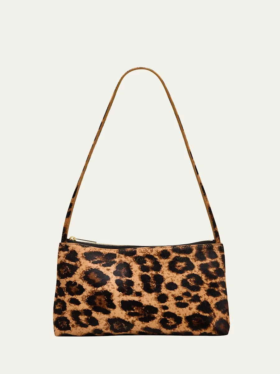 This Mansur Gavriel "Gaia" shoulder bag is crafted in dyed calf hair (Italy), printed in a bold animal pattern Flat shoulder strap, 10.2"D Zip top closure Lambskin leather lining Approx. 5.5"H x 9.5"W x 1.5"D Made in Italy