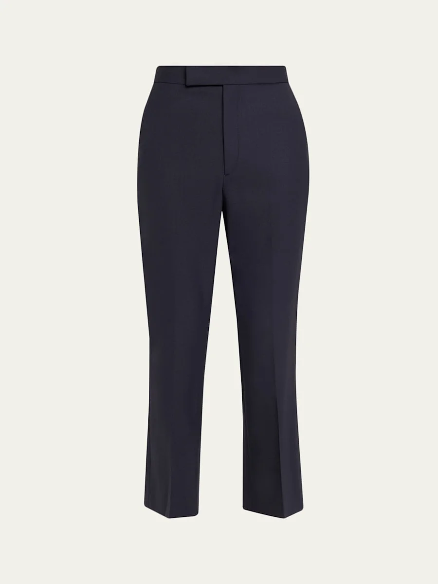 Crafted from responsible wool stretch, these trousers from MARIA MCMANUS are tailored with pressed creases High rise Flat front Angled side slip pockets Back welt pocket Straight legs Cropped length Hooktab/zip fly Responsible wool/elastane Dry clean Made in Poland SIZE amp; FITModel measurements: 5'10" tall Model is wearing a US size 4/Small