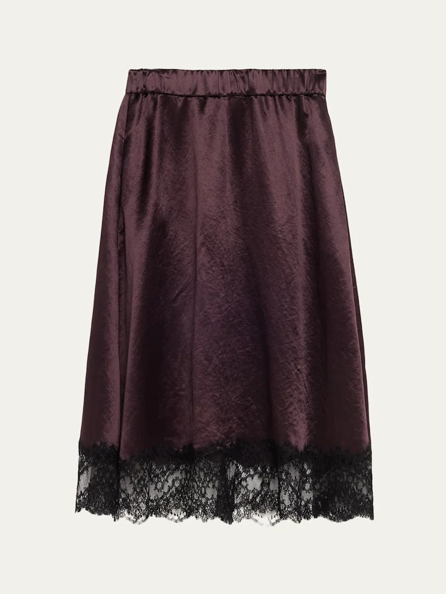 Lace-Trim Satin Midi Skirt