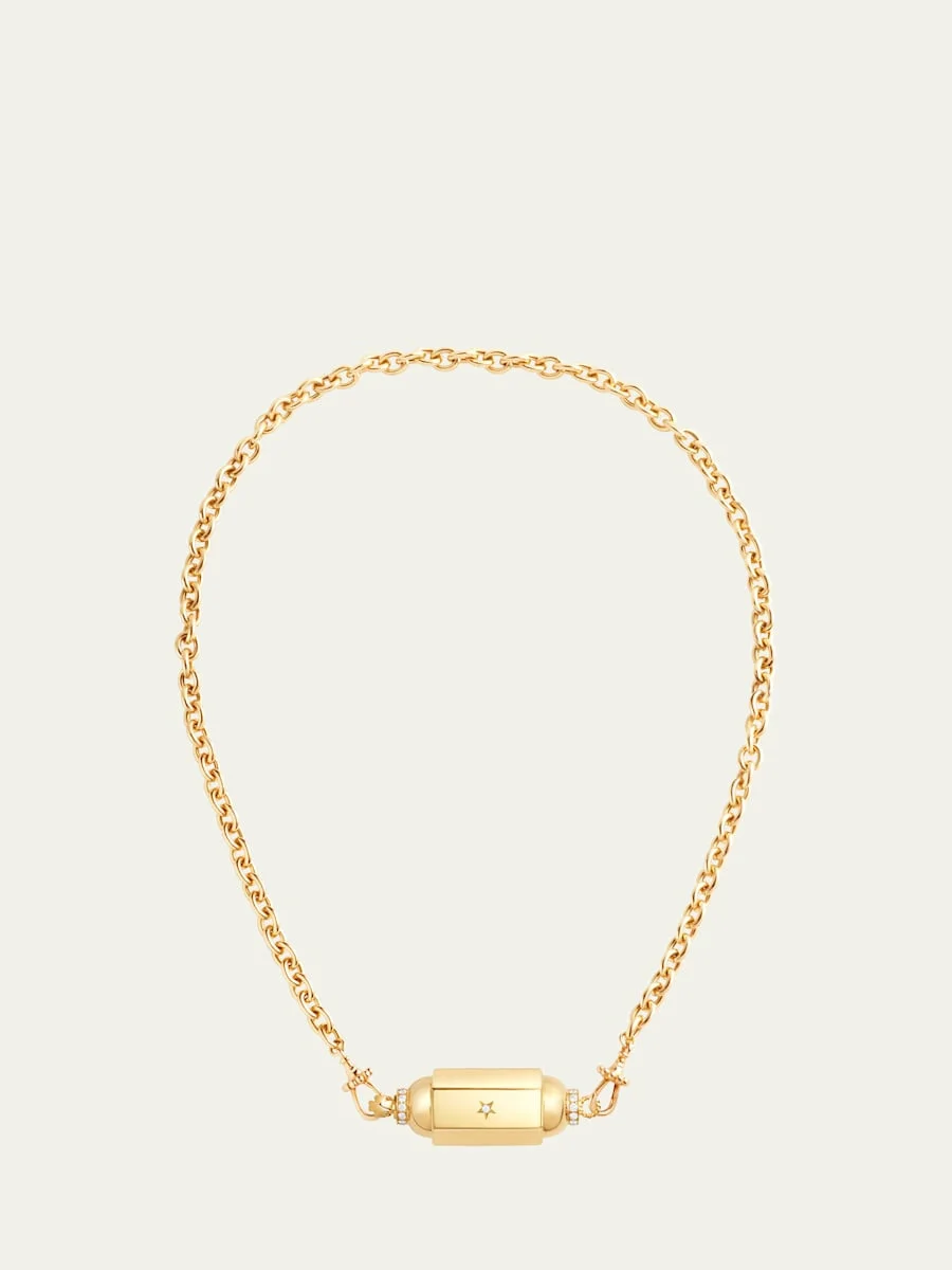 Marie Lichtenberg locket necklace Approx. 14.5" chain (37cm) Solid 18karat yellow gold Locket is decorated with 23 diamonds Diamond total carat weight: 0.78 Made in France