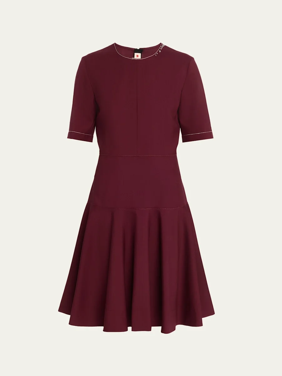 Drop-Waist Wool Crepe Short-Sleeve Dress