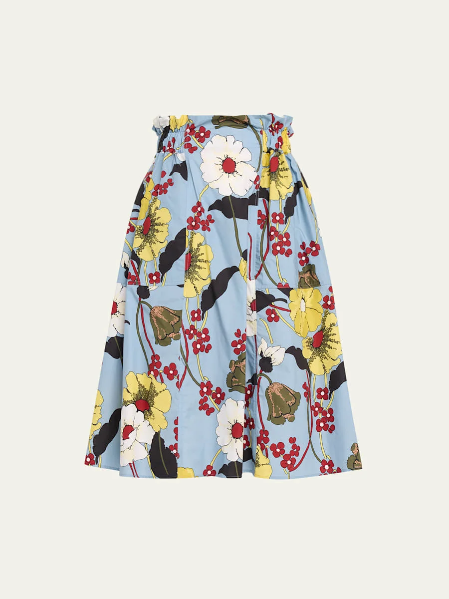 Crafted from crisp cotton poplin, this skirt from Marni features a flared silhouette with a floral print and ruffle elasticized waistband High waist Hip patch pockets Flared silhouette Hem falls below the knee Pullon style Cotton Made in Romania SIZE amp; FITModel measurements: 5'10" tall Model is wearing a US size 4/Small